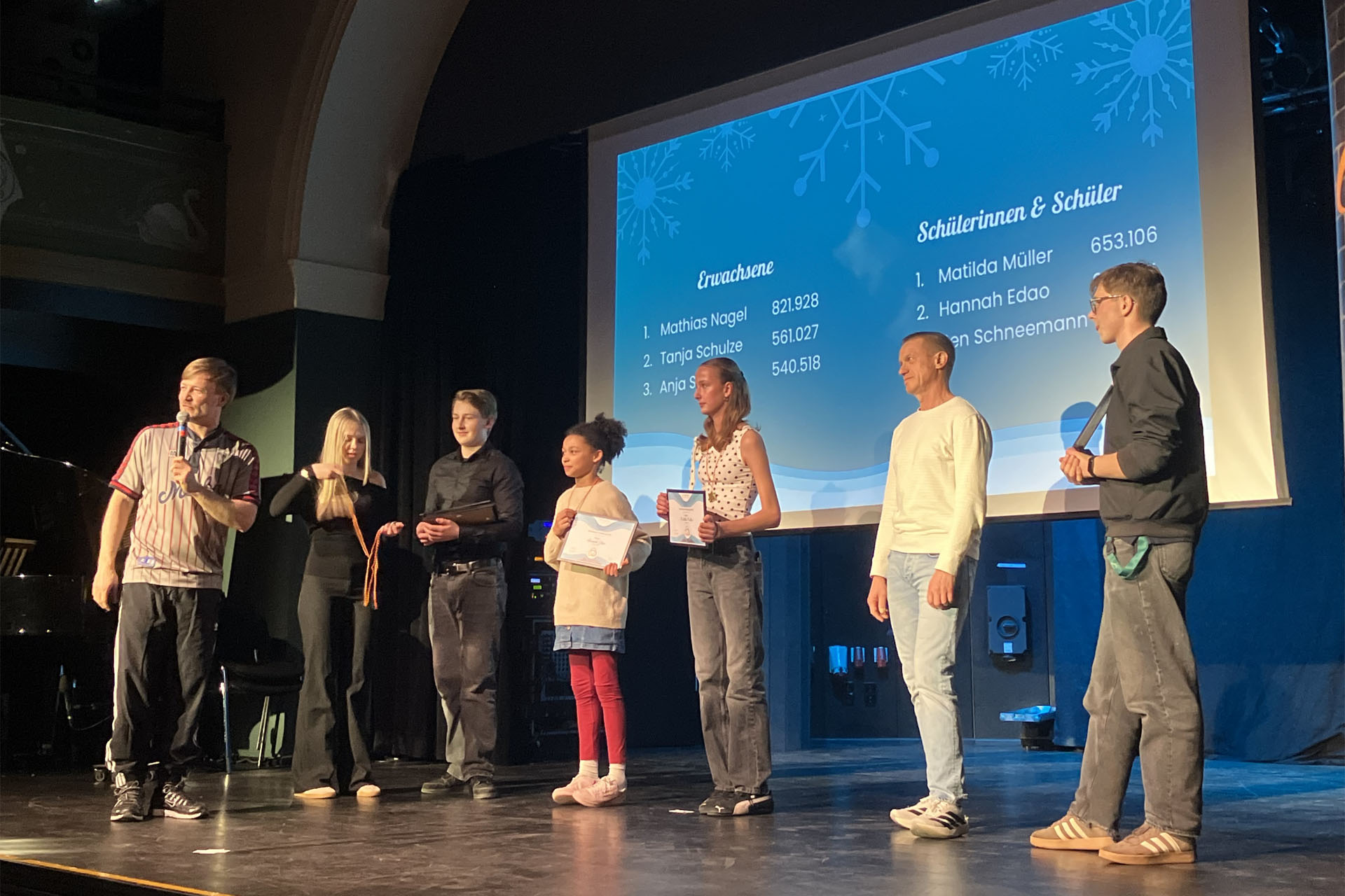 Am Ende des Abends konnten sich jedoch einige besonders hervorheben. In der Kategorie Gesang überzeugten Clara Dittberner und Bella Scheffler aus der Klasse 9/1 mit ihrer Interpretation des Songs „Voilà“ von Barbara Pravi und begeisterten damit Jury und Publikum gleichermaßen. In der Kategorie Performance gewann Rafael Scheffler aus der Klasse 5/2, der mit einer verblüffenden Zaubershow für Staunen im Saal sorgte. In der Kategorie Instrumental setzte sich Tilia Ding aus der Klasse 5/4 durch, die mit dem Stück „Waltz“ ihr musikalisches Können eindrucksvoll präsentierte.