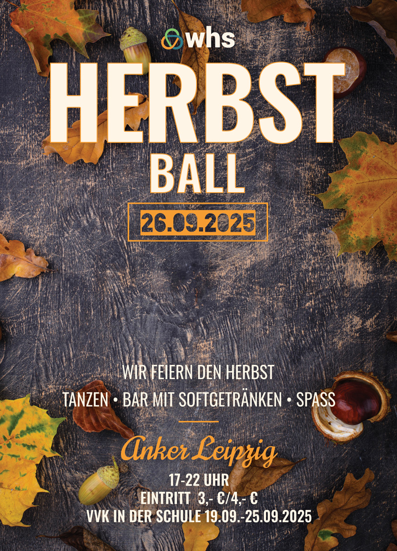 unser alljährlicher „Herbstball“ findet dieses Jahr erneut im Saal des Anker - neben der Schule - statt. Der Termin des feierlichen Balls ist Freitag, der 26. September 2025. Alle Schülerinnen und Schüler sowie Lehrerinnen und Lehrer unseres Gymnasiums sind herzlich eingeladen, sich bei Musik von unserem erfahrenen DJ und kleinen Show-Acts gemeinsam zu vergnügen.