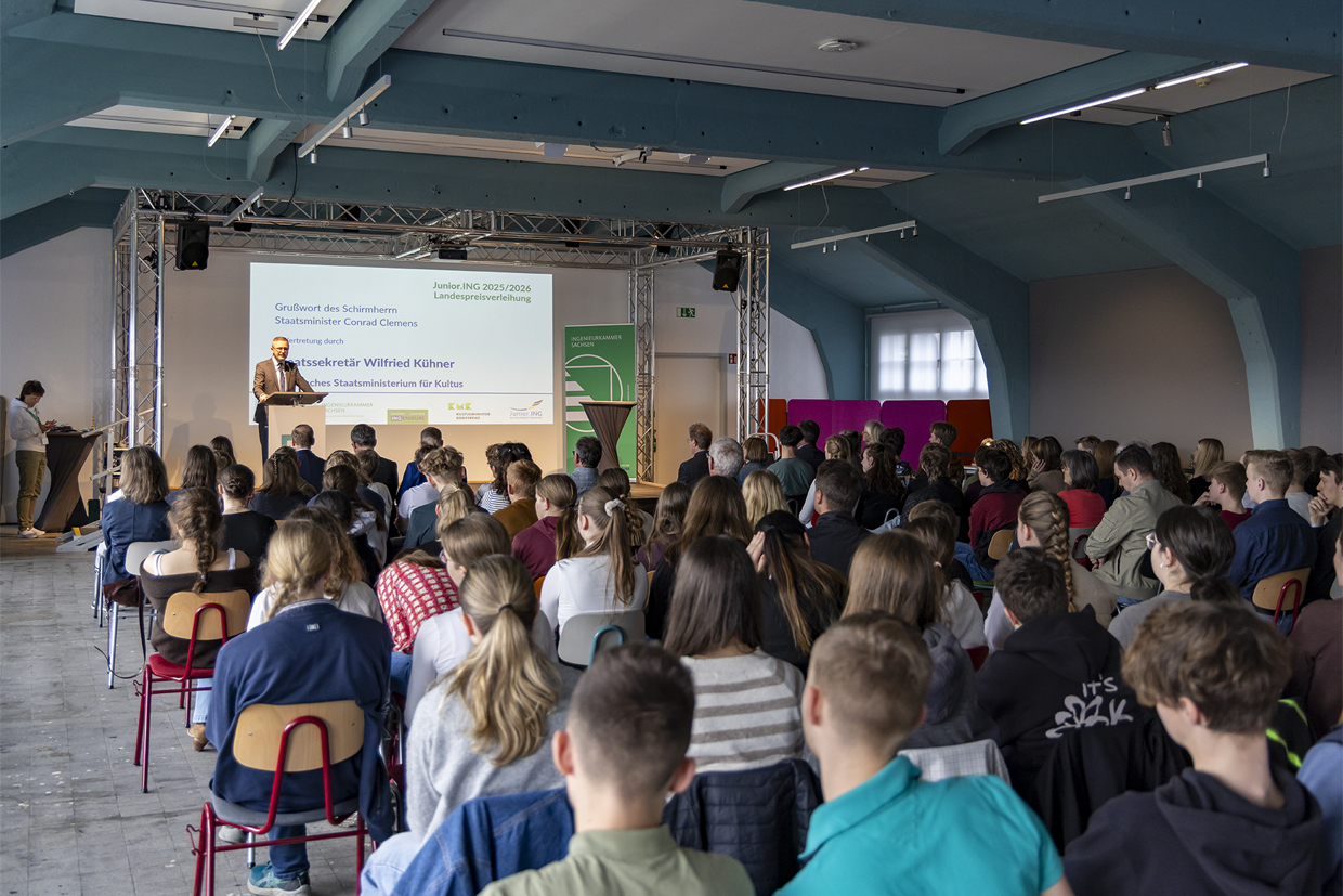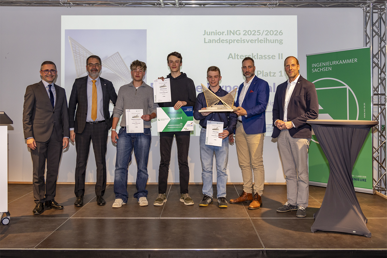 Am 14. April 2026 hieß es für Janek Hentsch, Sebastian Heimpold und mich, Jonasz Koper: Ab nach Dresden! In den Technischen Sammlungen fand die Preisverleihung des landesweiten Schülerwettbewerbs Junior.ING statt. Unser Team trat im Rahmen der Junior-Ingenieur-Akademie (JIA) gegen zahlreiche Mitstreiter aus ganz Sachsen an.