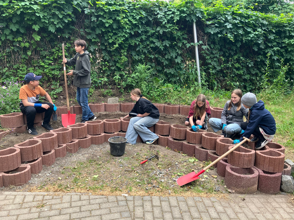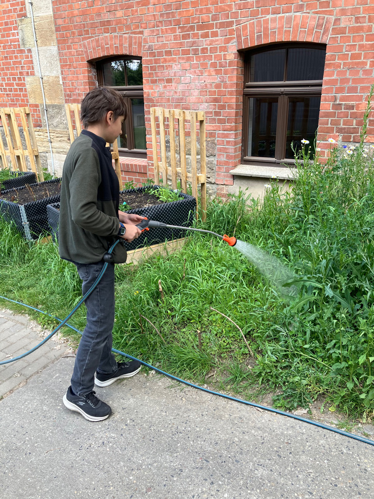 Im Schulgarten Der WHS lernen Schüler/innen, unter der Anleitung von Matthias Müller (Leiter vom Schulklub) mit Pflanzen umzugehen. Im Schuljahr 24/25 haben wir bereits viel kennengelernt und geleistet. Durch gute Planung und engagiertes Arbeiten konnten wir viel Neues im Garten erschaffen, wie zum Beispiel ein Insektenhotel, das Blumenrondell, vier neue Hochbeete und einen Pflanzkübelzaun. Dadurch ist unser Garten ein Ort für viele schöne Pflanzen geworden. Wir haben im Schulgarten Kapuzinerkresse, Lavendel, Kürbis, Sonnenblumen, Himbeeren, Johannisbeeren, Zucchini, Minze, Petersilie, Tomate, Borretsch und viele weitere mehr. Wir haben diese Pflanzen vor allem angepflanzt, weil wir Gewächse wollten, die Bienen und weitere Insekten gut annehmen. Wir erhoffen uns in den weiteren Jahren eine bunte Vielfalt an Pflanzen und viele neue Mithelfende. Am Ende des Schuljahres wusste jeder von uns wie er/ sie einen Akkubohrer oder eine Gartenschere benutzt, wie ein Hochbeet aufgebaut und gefüllt wird.