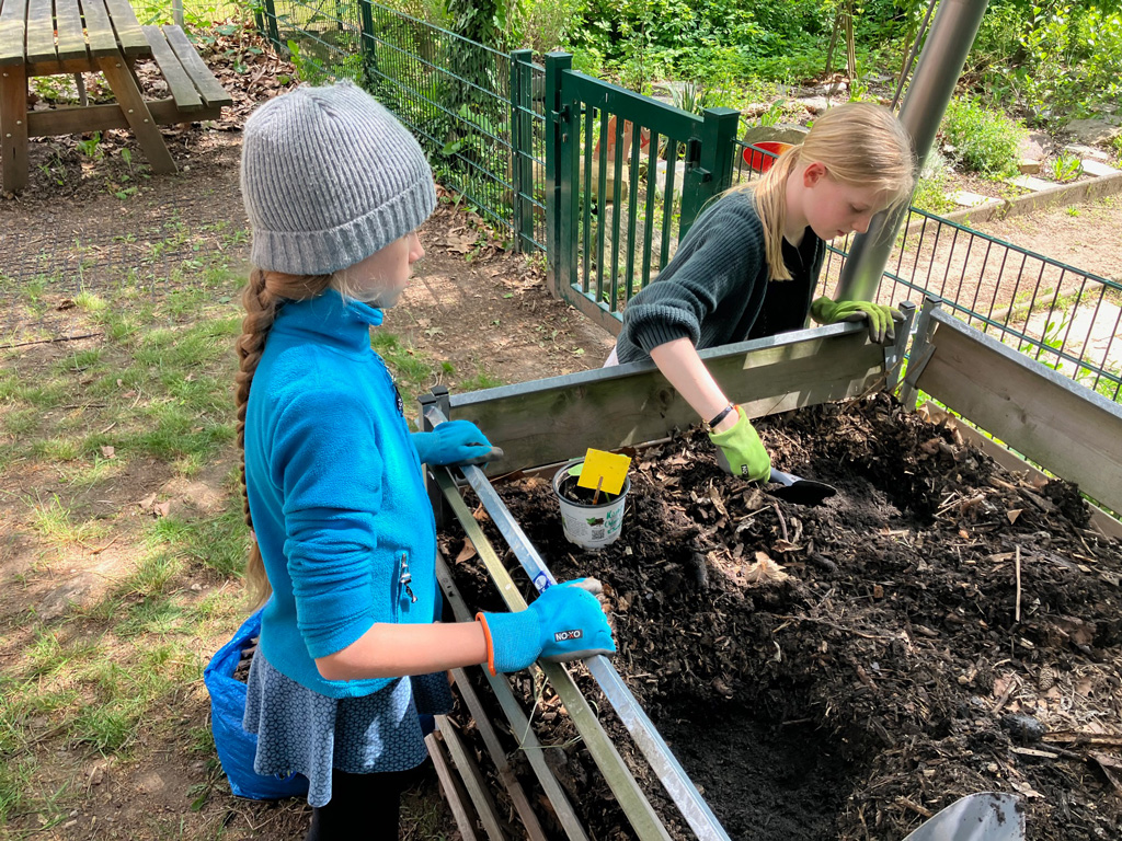 Für dieses Schuljahr haben wir uns vorgenommen, uns mehr dem Kompost zu widmen, da wir festgestellt haben, dass unsere Erdqualität verbessert werden muss. Ebenso wollen wir in diesem Schuljahr für eine größere Vielfalt an Gemüsepflanzen sorgen.