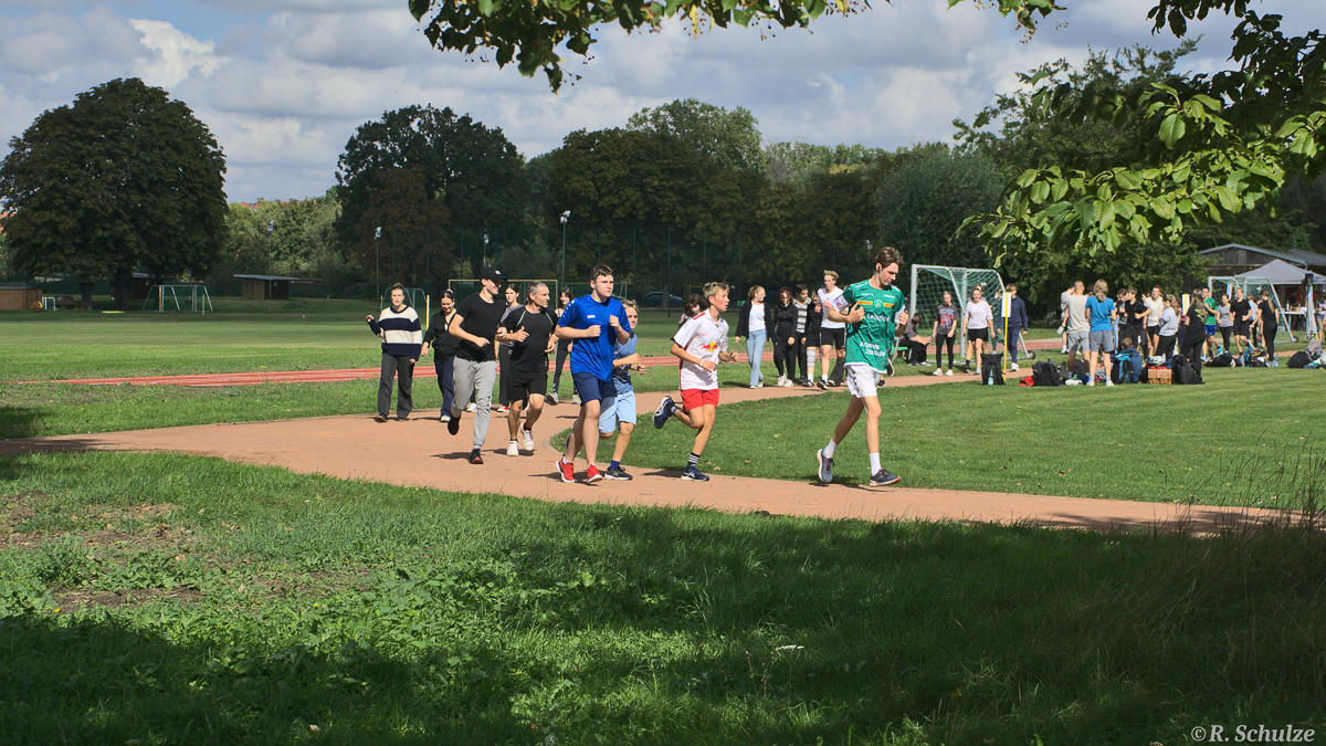 Im Vorfeld des Laufes suchten die Kinder und Jugendlichen nach geeigneten Sponsoren im persönlichen Umfeld, um das Spendenaufkommen möglichst weit nach oben zu treiben. Nach einer energiegeladenen Erwärmung durch die Sportfachschaft begaben sich alle Jahrgänge gestaffelt auf die Laufbahn der Sportanlage Wettinbrücke. Die Stimmung wurde von pulsierenden Rhythmen der Musikanlage und den Anfeuerungsrufen der Klassenleiter getragen.